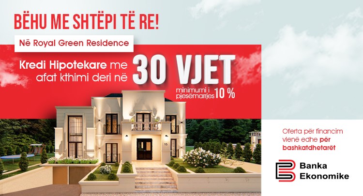 Bëhu me shtëpi të re në Royal Green Residence përmes Kredisë Hipotekare nga Banka Ekonomike.